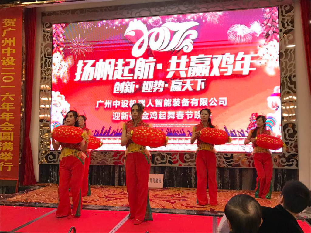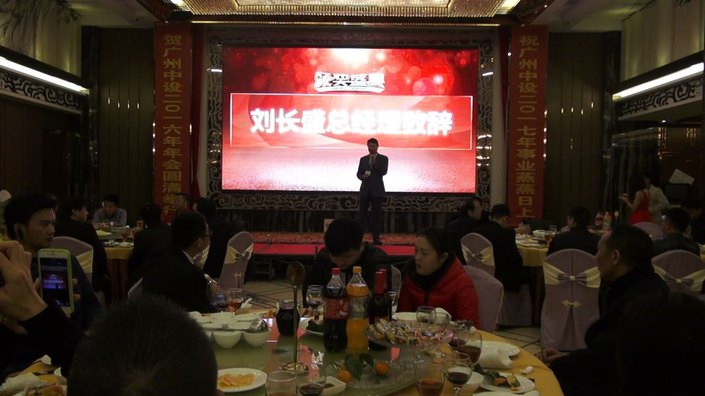 來自本公司的146位員工和嘉賓已陸續抵達年會會場,簽到現場人流如潮。下午六點半左右,由員工祝福及小蘋果(廣州中設版)視頻拉開帷幕。其后劉長盛總經理與陳德強副總經理先后登臺致辭并為大家送上新年祝福。