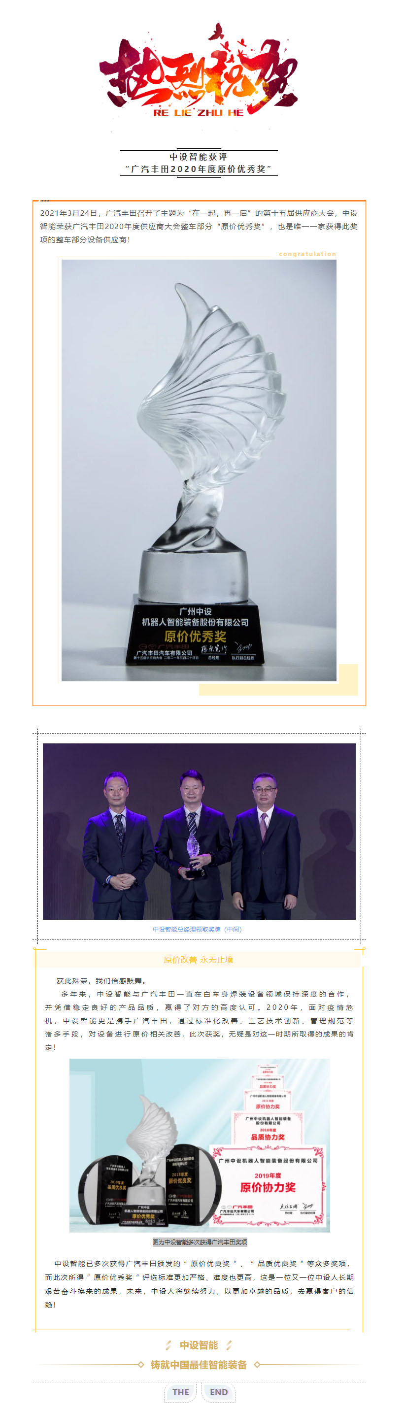 中設獲評廣汽豐田 【2020年度 原價優秀獎】