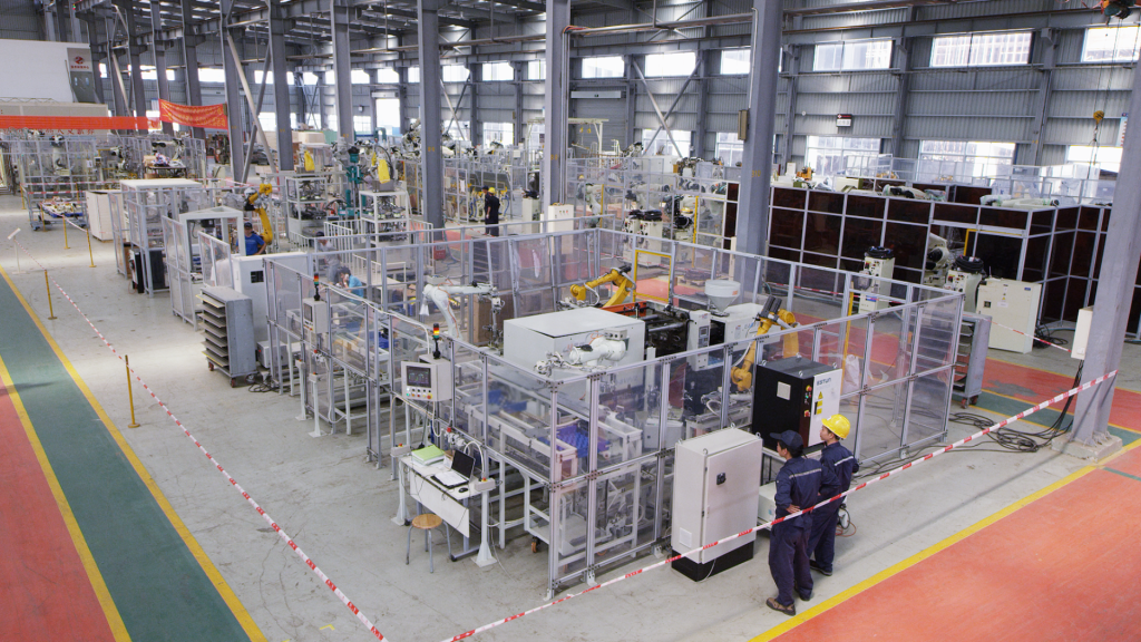可實(shí)現(xiàn)3種車型的混線生產(chǎn),采用豐田獨(dú)有電氣控制技術(shù)和自動(dòng)聯(lián)動(dòng)功能。占地緊湊集約,生產(chǎn)節(jié)拍48秒/件,年產(chǎn)20萬臺(tái)。